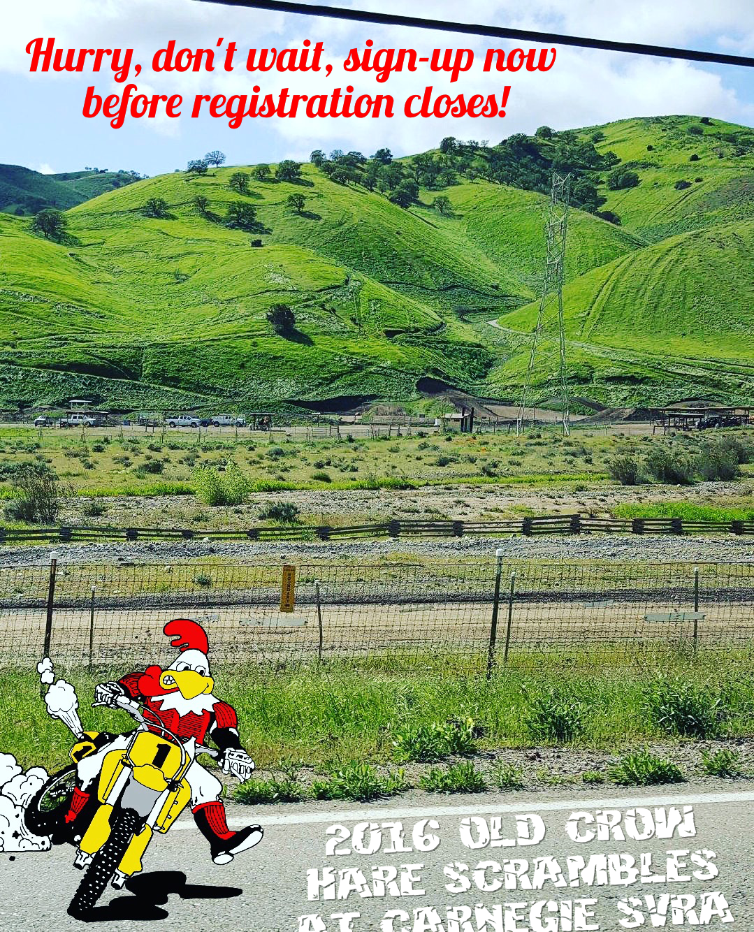 Hurry, 2016 Old Crow Hare Scrambles online registration ends May 11th, Wednesday morning at 6am. Still time to get a $10 Custom Competitor T-shirt and a $10 Rocky Mountain Gift Card. Don’t miss out and don’t wait in lines.